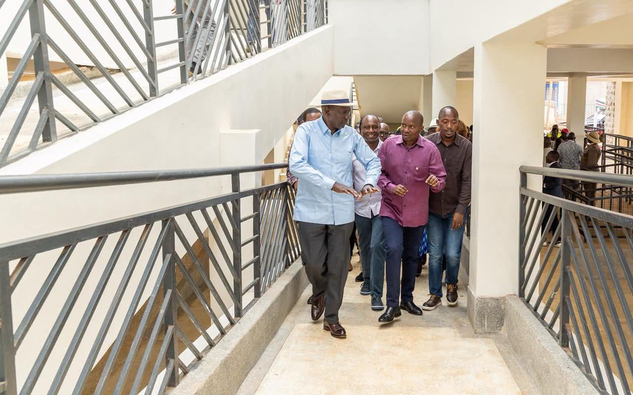 President William Ruto and his deputy Kithure Kindiki inspect the Sh60 million Kamuw'ogwo fresh produce market in Mwingi North on November 13, 2025/PCS.The old market, she explained, did not have a fence and they needed to have a stick in their hands all the time to ward off the goats roaming the market.