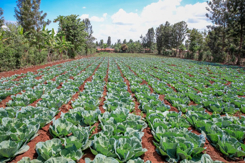 Cabbages being grown in a farm in Kirinyaga county