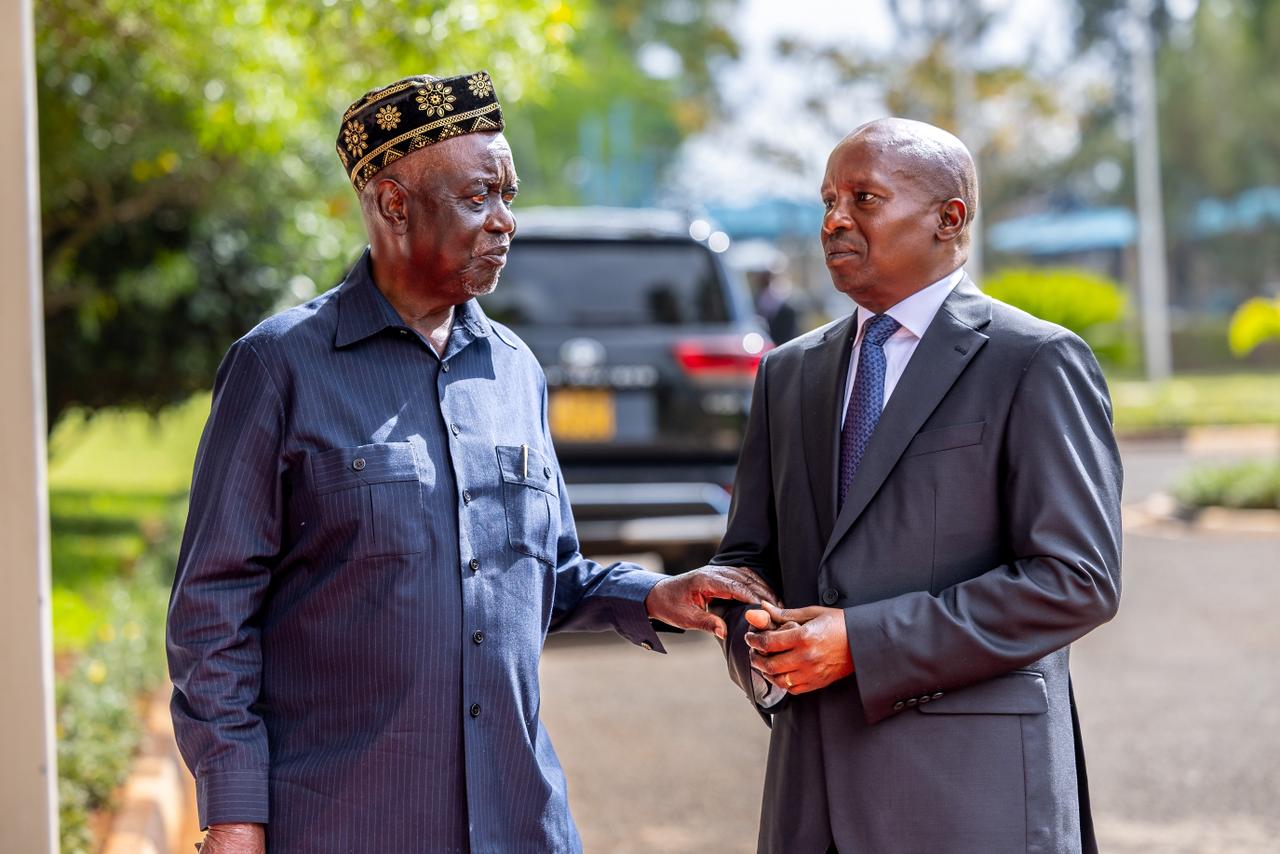 Deputy President Kithure Kindiki comforts Oburu Odinga at JKIA/DPCS