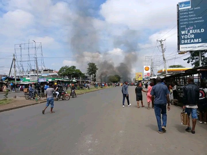 In graphic scenes circulating online, flames roared in the middle of the road, smoke and chaos blocking passage for vehicles. Protesters—many from the Makongeni estate—demanded an immediate halt to eviction plans tied to a city-led affordable housing project.