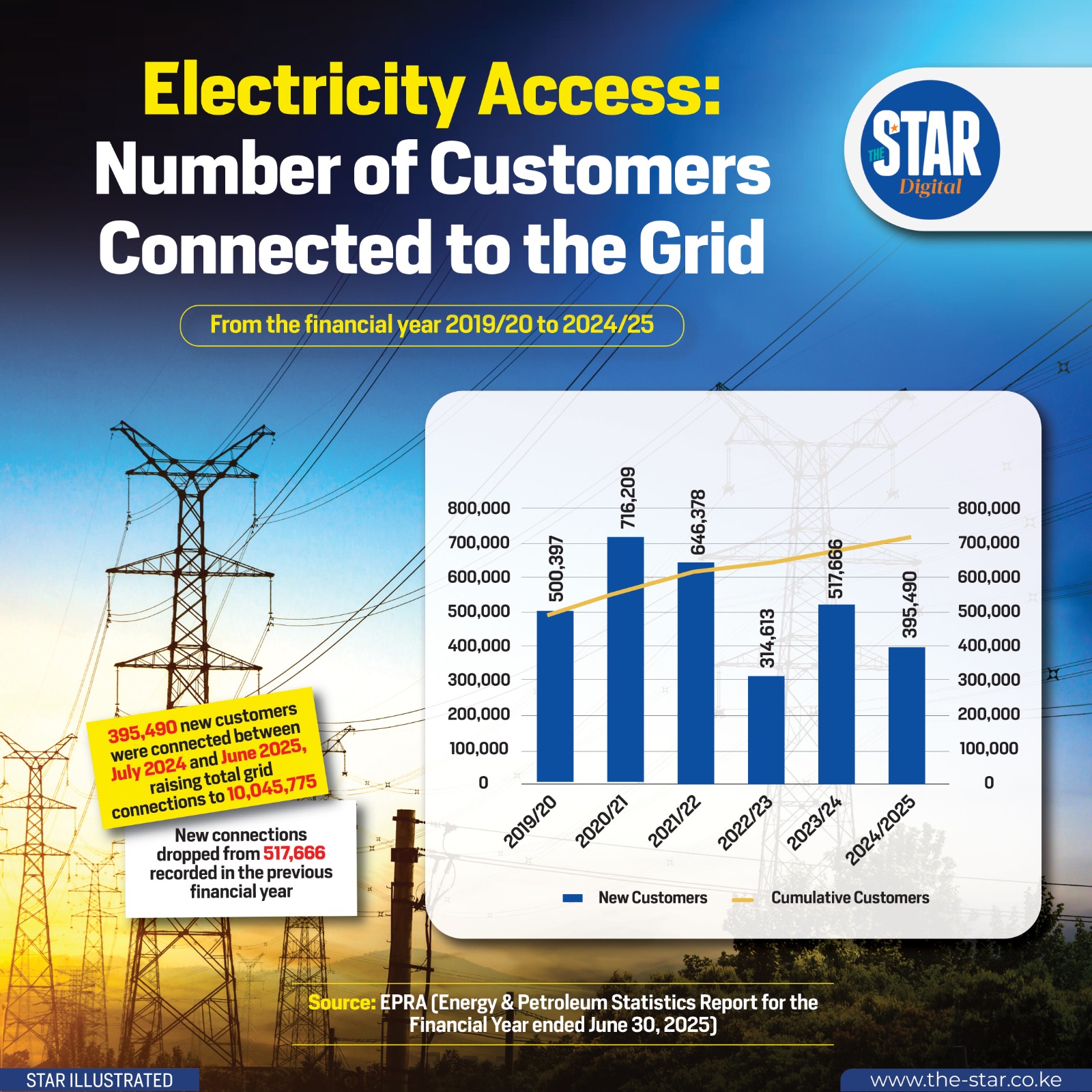 A total of 395,490 new customers were connected between July 2024 and June 2025, bringing the cumulative grid-connected customers to 10,045,775.