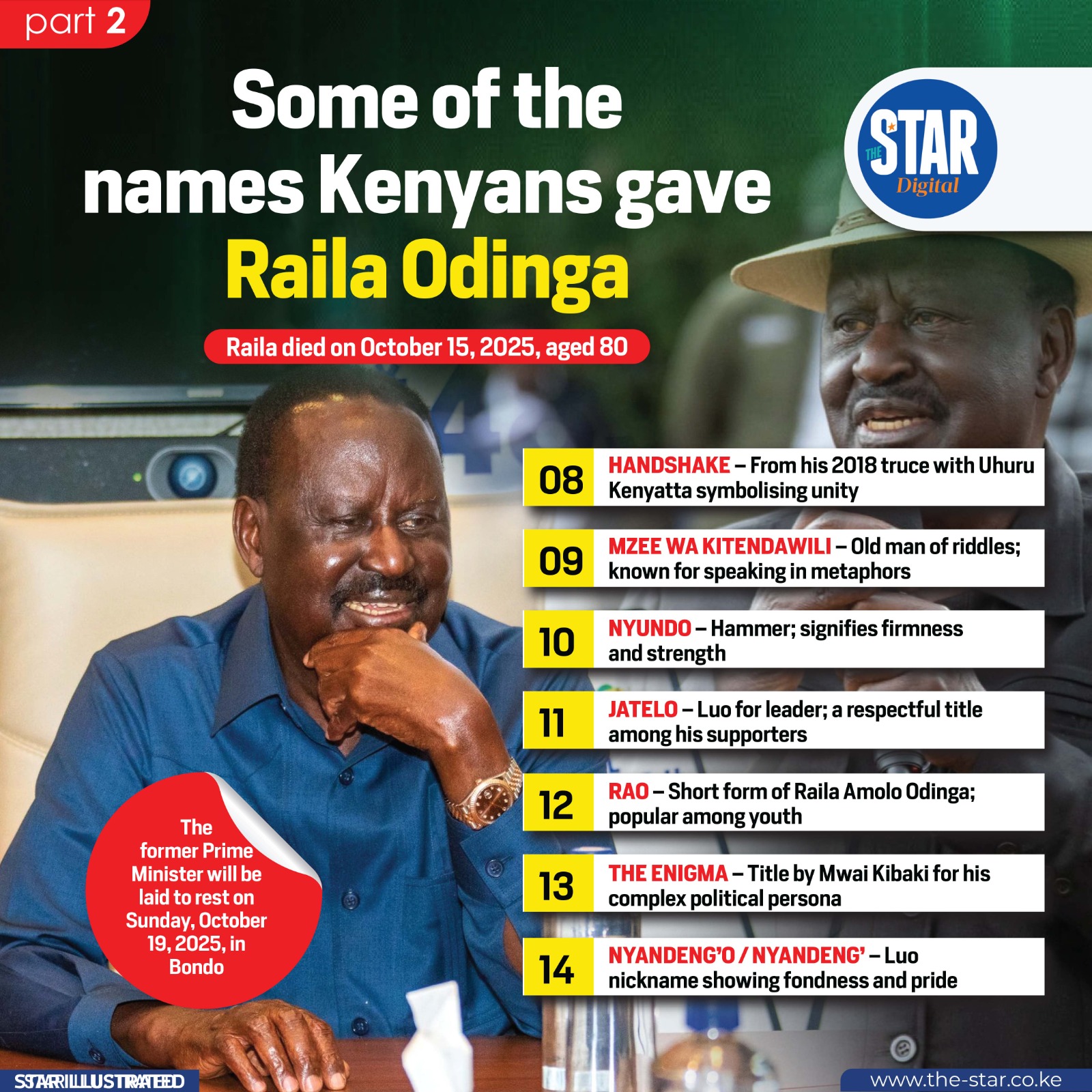 Raila Odinga, who passed away on October 15, 2025, at the age of 80 and is to be laid to rest on October 19th in Bondo, was known by many names, each capturing a facet of his complex political life.