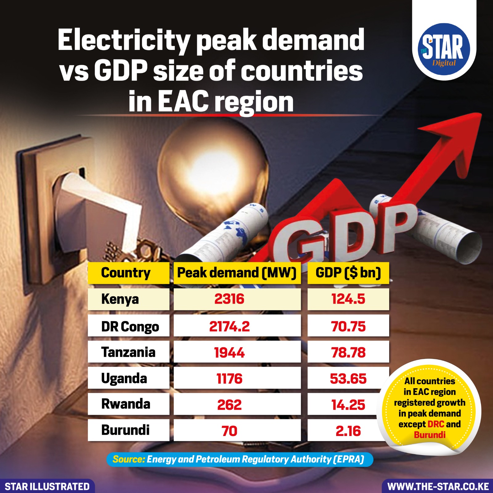 The latest data from the Energy and Petroleum Regulatory Authority (EPRA) shows Kenya leads the East African Community (EAC) region in electricity peak demand at 2,316MW, supported by a GDP of $124.5 billion.